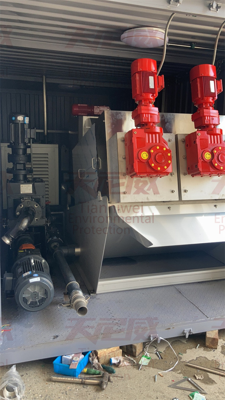 天尼威的撬装式污泥脱水设备将转鼓分离、砂石分离、叠螺压滤等单元集成于标准集装箱内,支持快速吊装和运输,尤其适合临时性或分散式清淤项目。车载叠螺机则直接安装在运输车辆(如4.5米至13米车型)上,可灵活部署至河道、市政管网等现场,无需固定场地。